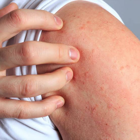 - hives, an itchy rash made up of many red bumps